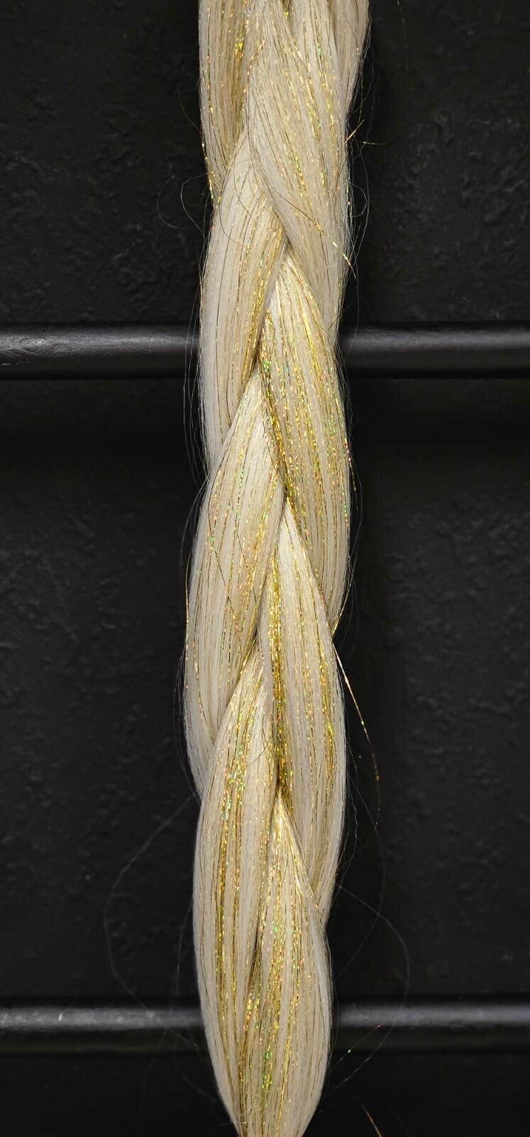 Het haar is voorzien van tinsel voor een subtiele, glinsterende finish.